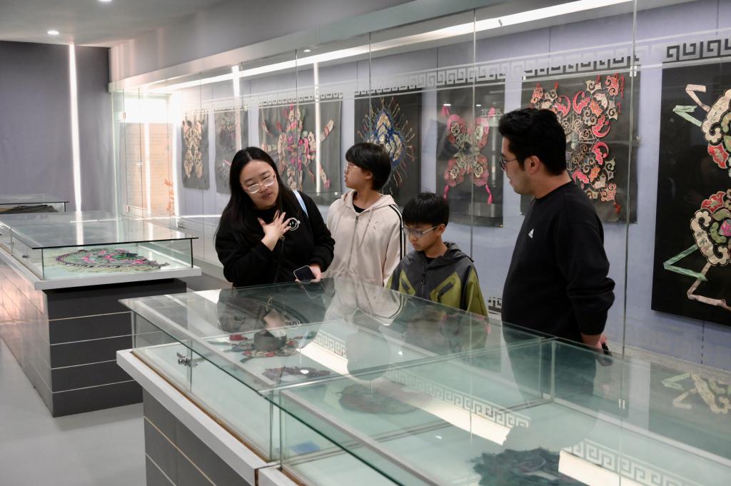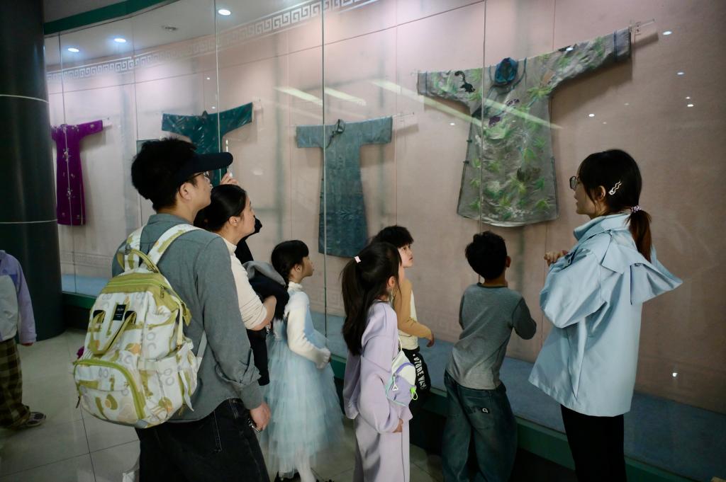 在志愿者引导下,孩子和家长们有序走进民间服饰传习馆,近距离感受中华纺织文化的深厚底蕴。馆内陈列的传统织物、特色服饰、纺织原料与机具,无不吸引着孩子们驻足观看、认真聆听。志愿者们用通俗易懂的语言,为大家讲解棉、麻、丝、毛等天然纤维的特点,介绍传统纺织技艺的发展历程,讲述一件件精美展品背后的故事。孩子们认真观察、积极提问,在沉浸式体验中了解 “衣被天下” 的纺织文明,感受一针一线所承载的匠心智慧。