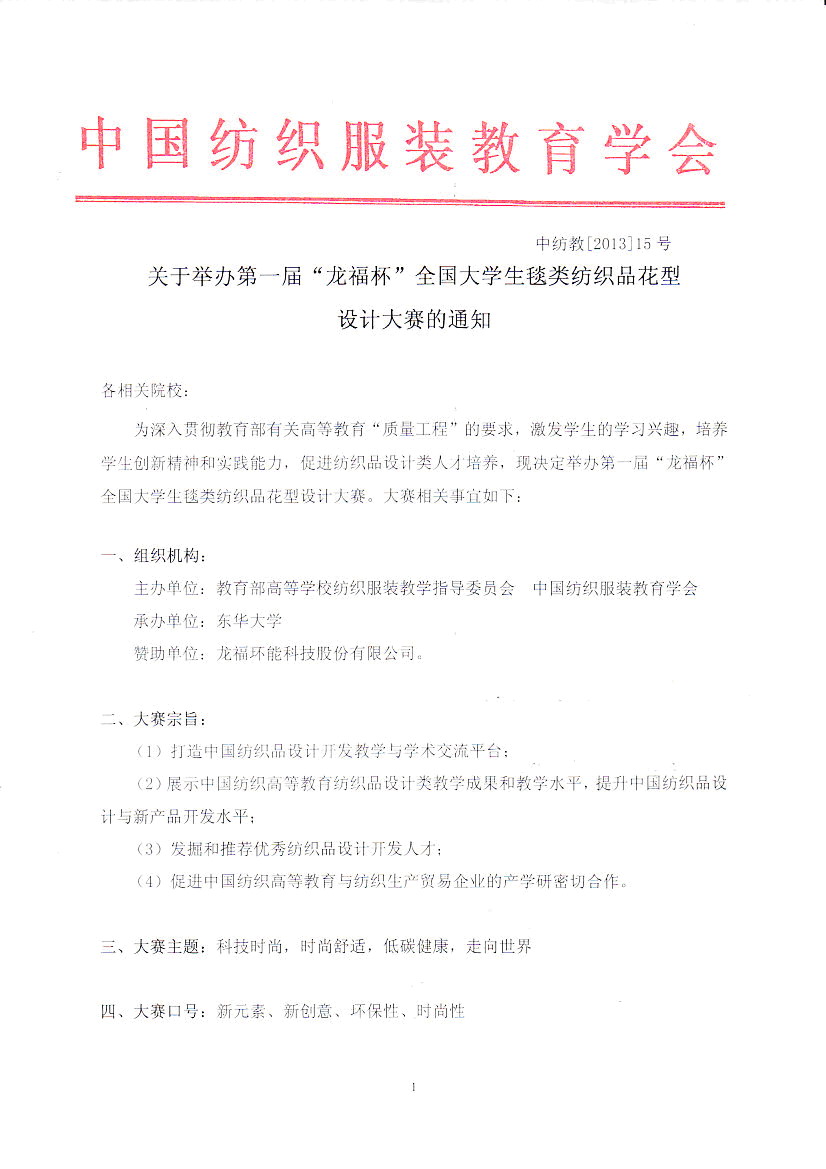 关于举办第一届“龙福杯”全国大学生毯类纺织品花型设计大赛的通知