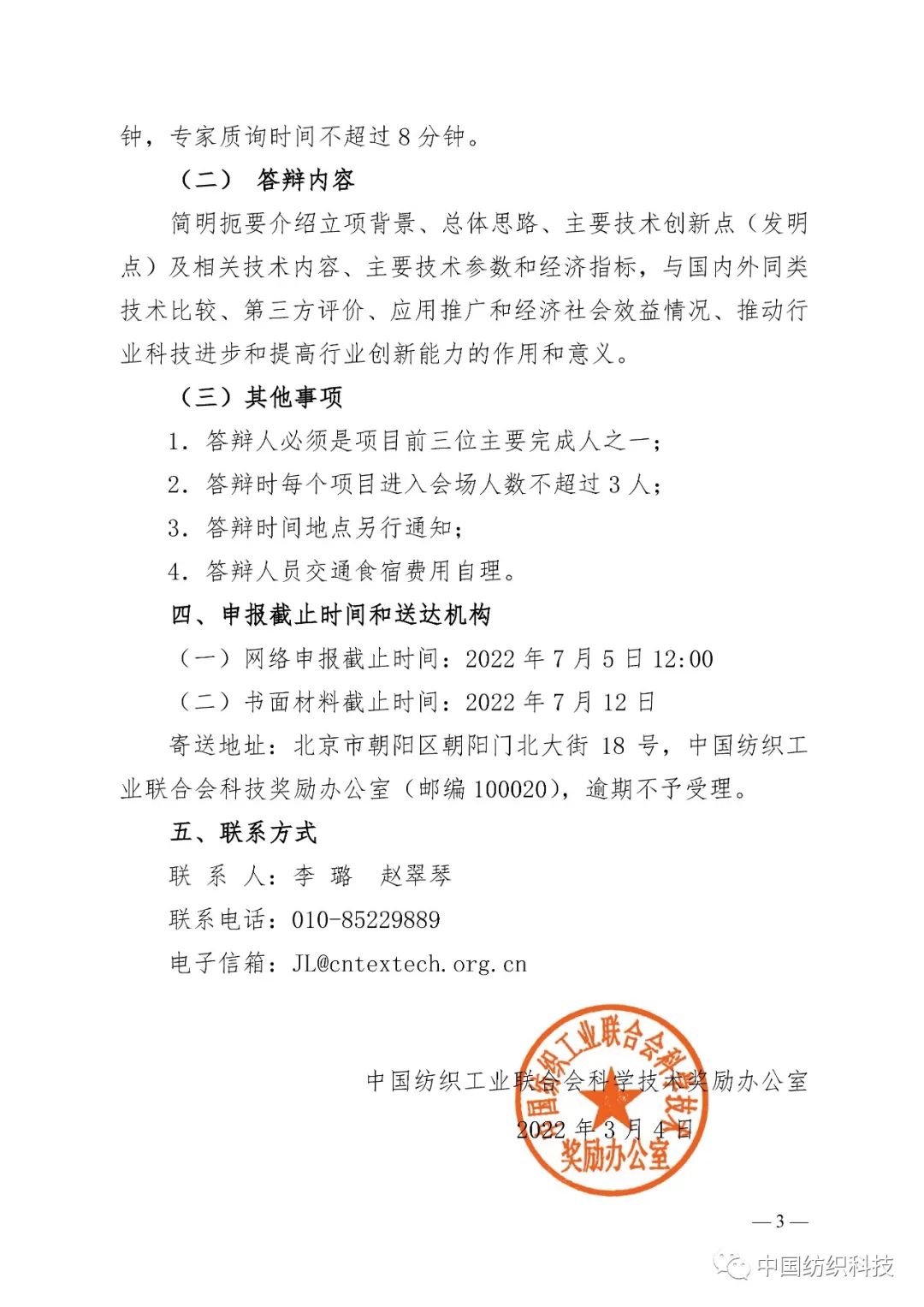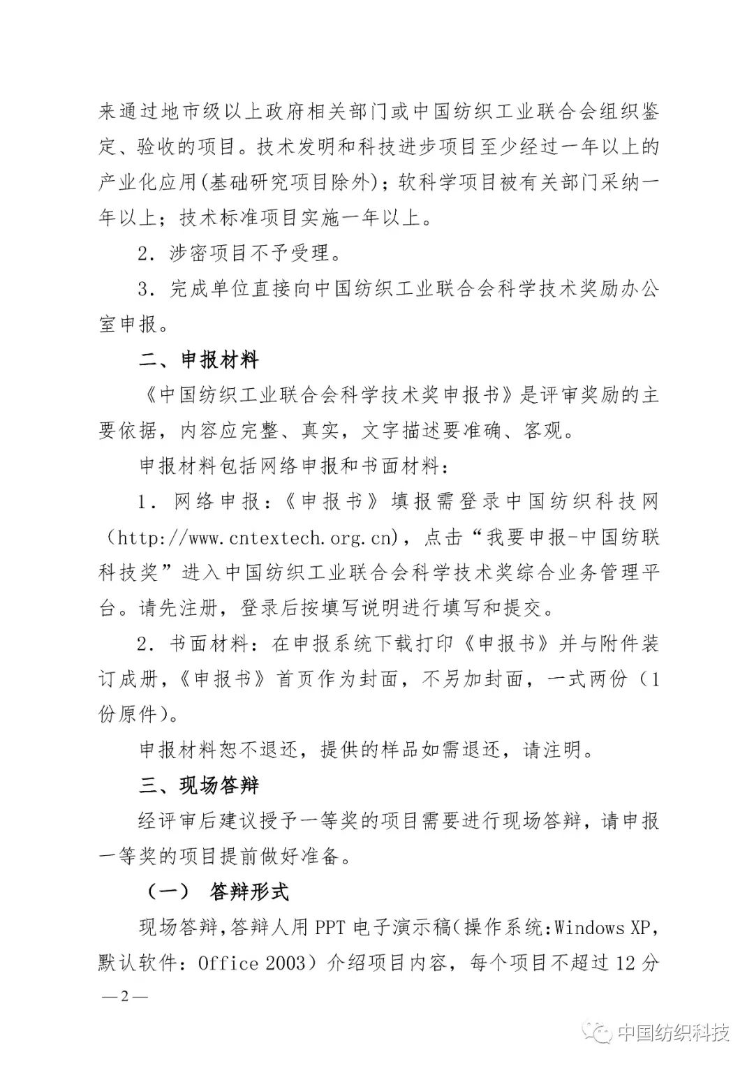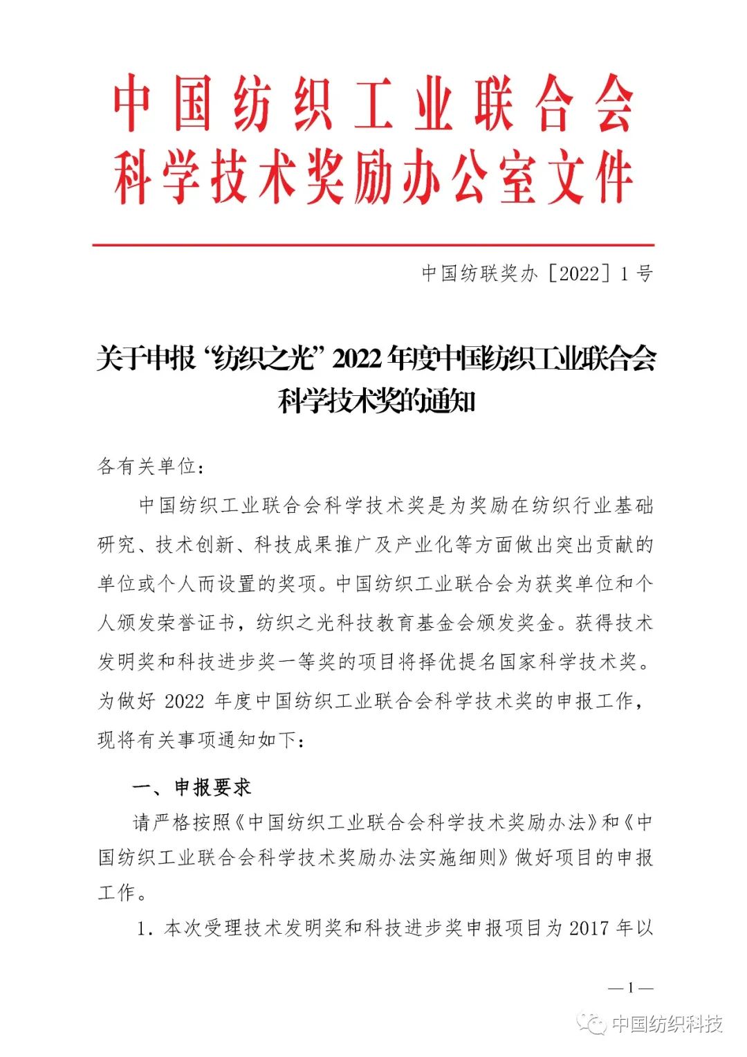 2022年度中国纺织工业联合会科学技术奖的申报工作已经正式启动,具体通知如下: