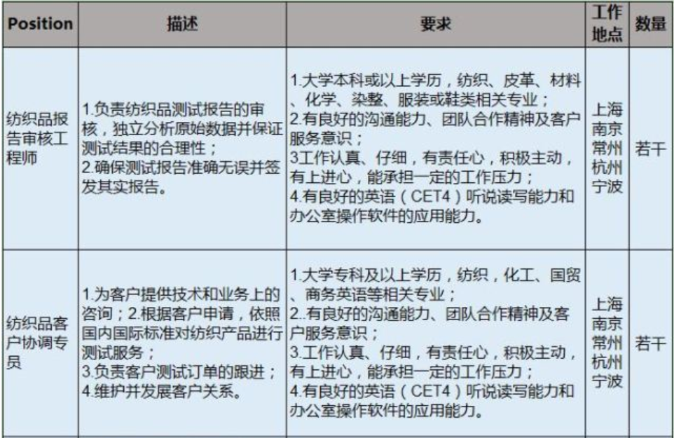 纺织品及鞋类实验室遍布上海、广州、杭州、宁波、常州、青岛、天津、南京、厦门等地。服务产品涵盖纺织服装,家纺制品,羽绒及羽毛制品,羊绒、羊毛制品、皮革及鞋类制品,箱包及手袋、户外用品、个人防护用品等。SGS拥有全球领先的纺织品及鞋类实验室和行业权威专家,通过一站式的服务为企业提供全面的有效支持和风险防护。