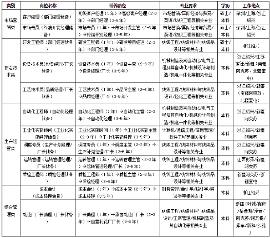 华孚时尚股份有限公司始创于1993年,是中国A股首家色纺行业上市公司,全球色纺产业领导品牌、全球最大的新型纱线供应商和制造商之一。 公司2018年实现营业总收入143.1亿,实现归属于母公司所有者的净利润7.5亿。 公司主营中高档色纺纱线,配套提供半精纺、涡流纺、气流纺色纺纱线和高档新型的坯纱线、染色纱线,同时提供流行趋势、原料与产品认证、吊牌、技术咨询等增值服务。主导产品远销欧美、日韩、港澳、东南亚等几十个国家和地区,是众多国内外名牌服饰的首选纱线。公司拥有189万锭的产能,分布浙江、长江、黄淮、新疆和越南五大生产板块。公司以“色彩引领者”、“环保先行者”、“技术创新者”为己任,引领色纺行业发展。 面对产业互联网与柔性供应链发展的新机遇,公司重新定位为全球纺织服装产业时尚运营商,坚持主业不放松、共享产业不停步,沿着带路战略、智化战略、网链战略,朝着千亿目标奋勇向前。 华孚视人才为第一资本与核心竞争力的源泉,致力于创造员工与企业共赢的平台,为员工提供富有竞争力的薪酬及激励机制,充分保障每一位优秀人才在华孚的价值实现。诚邀各位精英加盟华孚,共创“全球纺织服装产业时尚运营商”的宏伟事业!