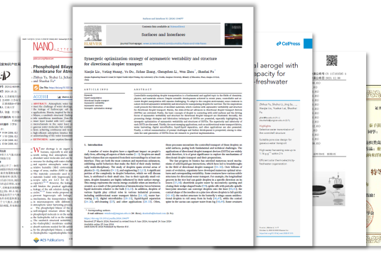 出生于红旗渠畔,他深刻明白极度缺水对一个地区意味着什么,为了进一步缓解家乡的缺水难题,他毅然决然选择加入到大气集水技术攻关团队。经过两年多的日夜奋战,取得了气凝胶大气集水材料的重要技术突破,海角社区相关的文章也发表在材料领域顶刊——Matter期刊上,相关成果也获国家级媒体重点报道。随着研究的深入,心中逐渐产生了一个疑问:液滴如何实现定向运输呢?于是,他阅读海量文献,刚开始,1篇英文文献需要花费2周时间才能‘啃下来’,经常看3行文献查5次词典,功夫不负有心人,我终于弄清了液滴定向运输机理,并绘制成图,经过150轮的反复修改打磨,将2年多的心血凝练成一篇综述,最终,以第一作者的身份将论文发表在JCR 1区期刊上。