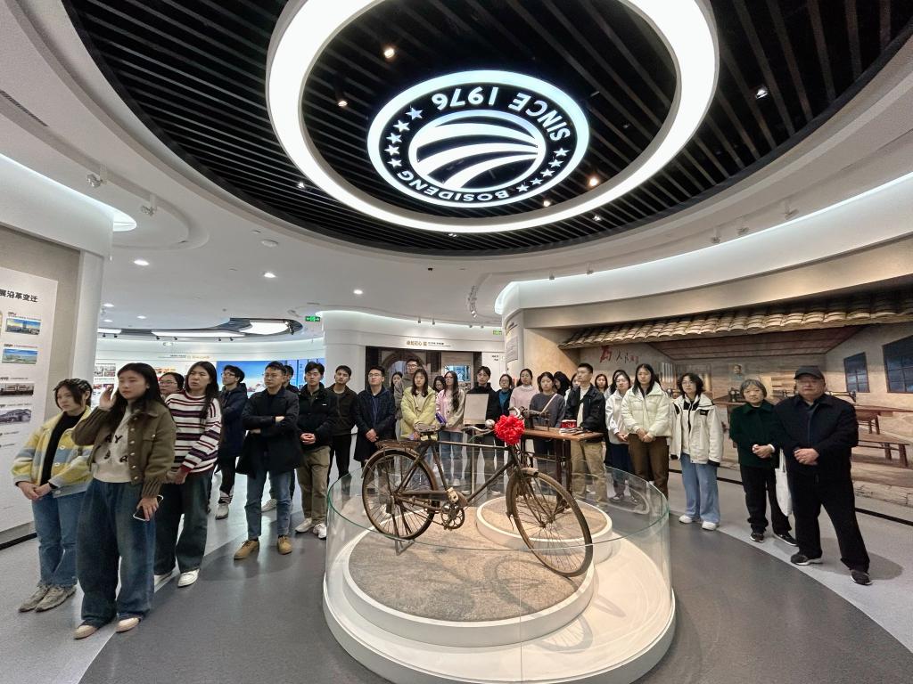 随后,师生党员一行来到波司登集团,参观登峰馆、党建馆、智能配送中心、线下直营店,并与集团相关工作人员沟通交流。在登峰馆,大量丰富详实的史料,反映出波司登集团从无到有、从小到大、从大到强的发展历程;在“领航”党建馆,学习波司登集团将党建工作融入企业生产经营管理发展全过程;在智能配送中心和线下直营店,感受全智能化的生产、仓储、销售一体化格局。同学们沿着波司登品牌之路的参观路线,纷纷表示要学习波司登集团高远的目标、高尚的精神、高贵的品德。此外,师生党员们还就海角社区、大学生就业等问题进行探讨。
