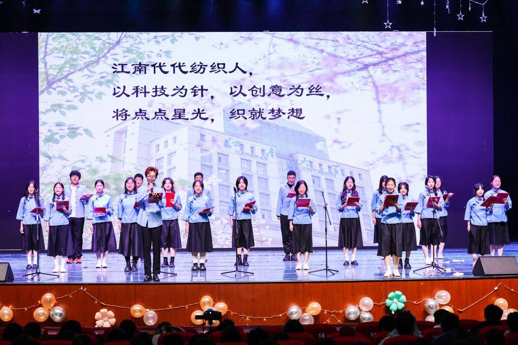 晚会以“聚光·织未来”为主题,寓意纺织专业汇聚智慧和创新,编织出更加美好的明天。节目分为“初光破晓·新启程”、“时光织锦·燃青春”、“星光追梦·绘未来”三个篇章,学院本科生与研究生携手共演,展现了青春洋溢、活力四射、梦想驱动及鲜明态度的艺术风采。