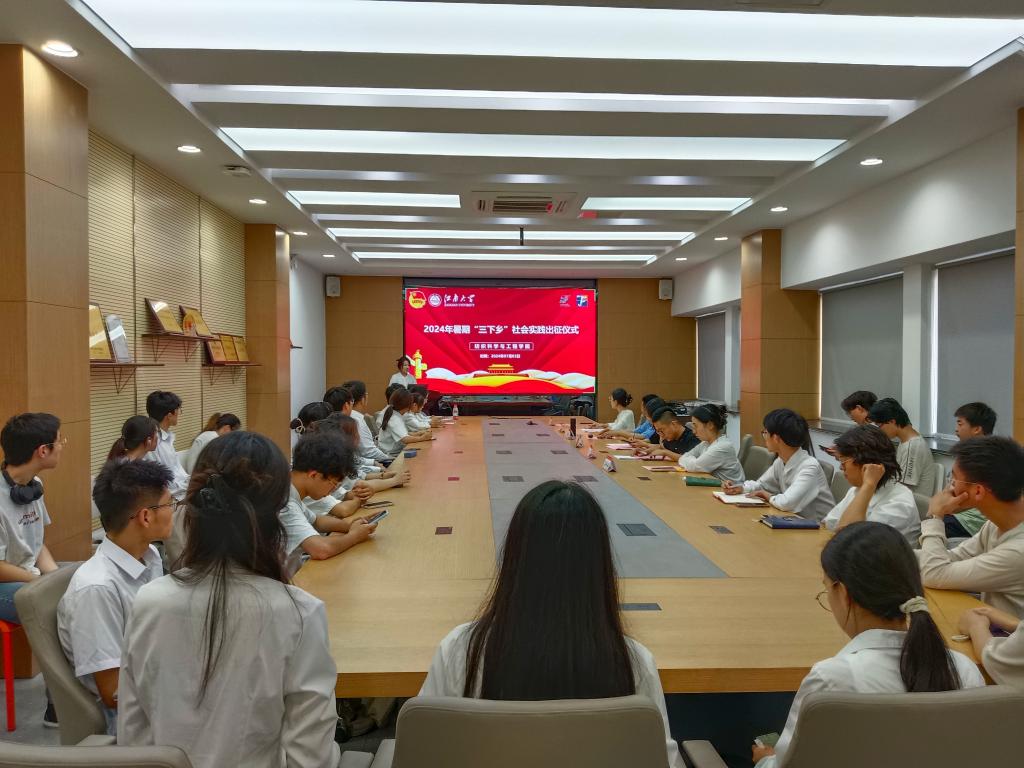 在学院A306会议室举行2024年暑期“三下乡”社会实践出征仪式。学院党委副书记、副院长杨莉勤,关工委常务副主任谢翠林,学工办主任兼分团委书记陈裕,辅导员伏曦、孙婷婷,学生会执行主席李子心及2024年暑期社会实践院级重点团队成员参加活动。活动由李子心主持。